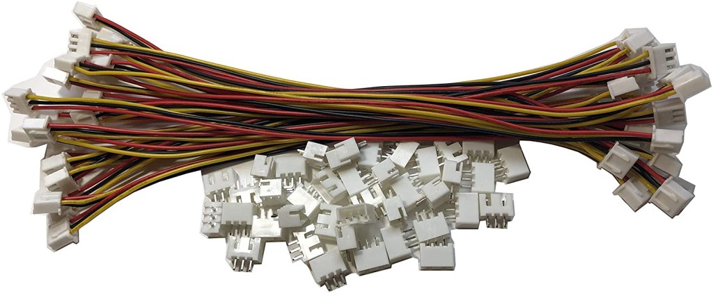 Our temperature sensors are three-wired. Power, Ground, and Data, regardless whether we’re using the waterproof versions or just the DS18B20’s which means we needed three-wired connectors and their jacks. These were easy to source from Amazon for just $8 per bag.