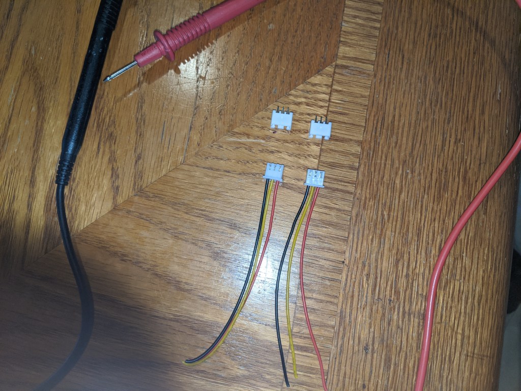 Cut in half you get twice as many as you need. They came pre-wired in a mirrored configuration which means rewiring them. But if you’re careful you can remove the crimped ends from the female connectors by pressing a sharp object in the slot, slide out the wire crimp and then put it back in at the position you need. Easy-peasy.