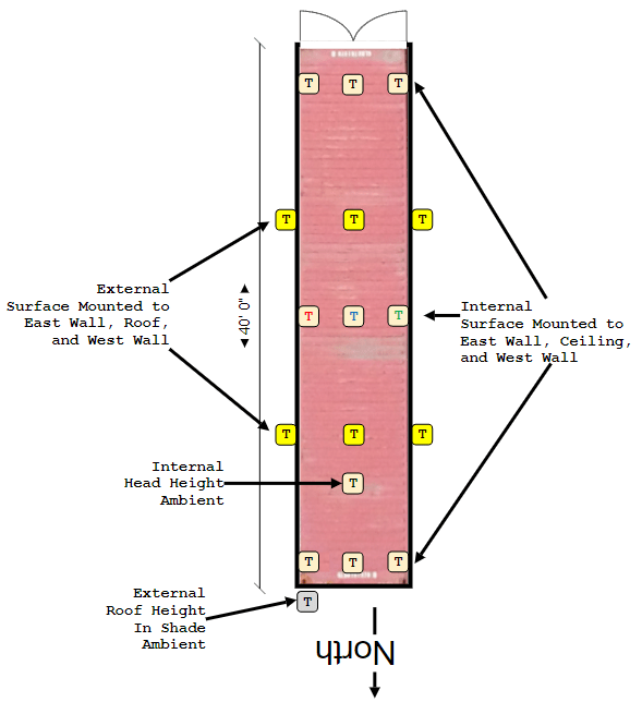 For the “live-aboard” shipping container the plan is to deliver the first of two new 40′ high cubes by mid-August and they will be oriented East-West. Not because we want to keep the walls out of the summer morning and evening sun but because the finished product will have solar panels on its roof with a southern exposure. For the time being, let’s see what data the Beagle can capture on the storage container so we can establish a baseline and find out which insulating methods work best.