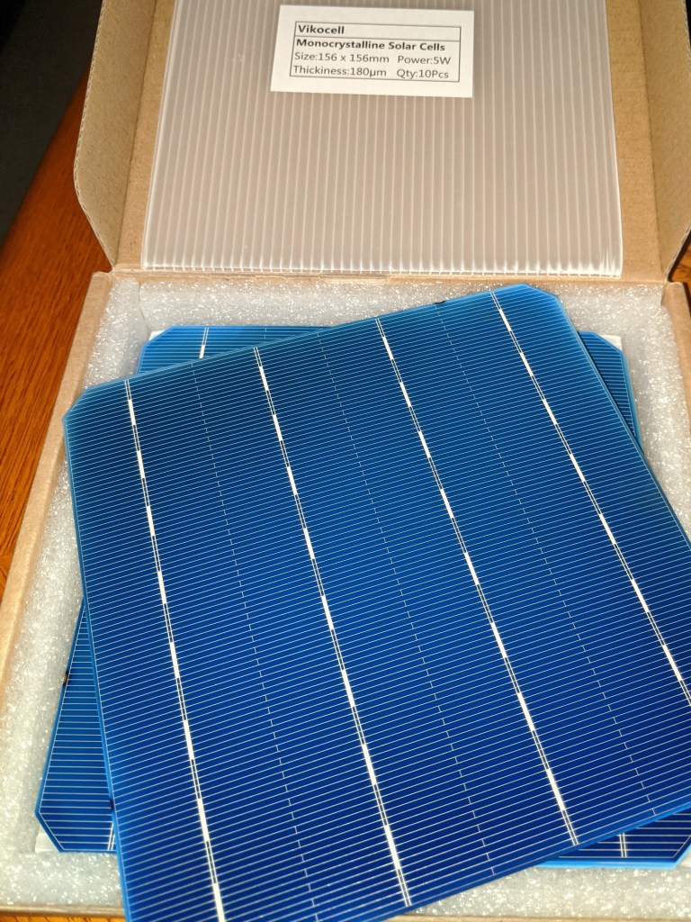 For a few bucks a piece I ordered a box of 10, 0.5 volt 5Watt monocrystalline solar cells. In retrospect, getting mono instead of polycrystalline may have been a mistake, as you’ll soon see from the chart data.