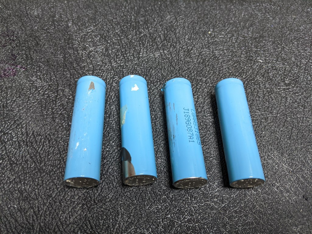 18650’s – 18mm diameter by 65mm height (nobody knows what the last 0 is for) – most commonly used in e-bikes and e-vape/e-cigarettes, depending on the chemistries used; and yes, this form factor is even used in the Tesla Model S and Model X, to this day. We’ll be using used 18650’s for this prototype mostly because there’s just so many on the market and the prices are just too good to use something bigger…for now.