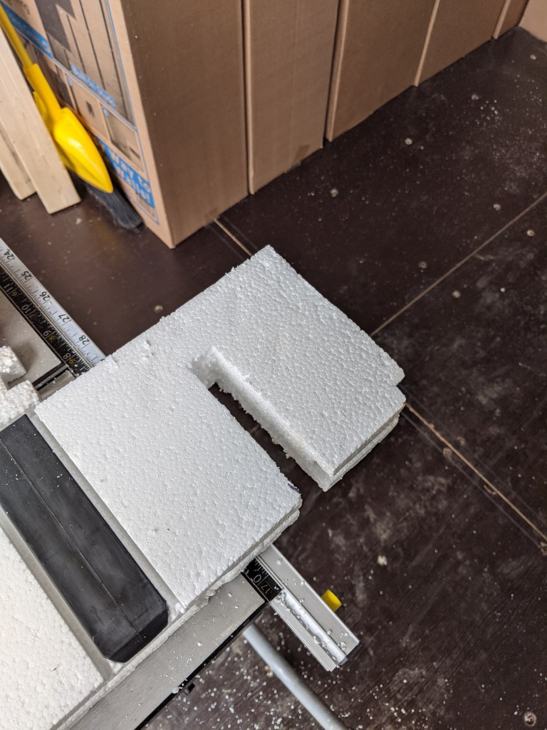 Dry fitting reveals part of the container juts out slightly, creating a gap behind the insulation. That won’t work.