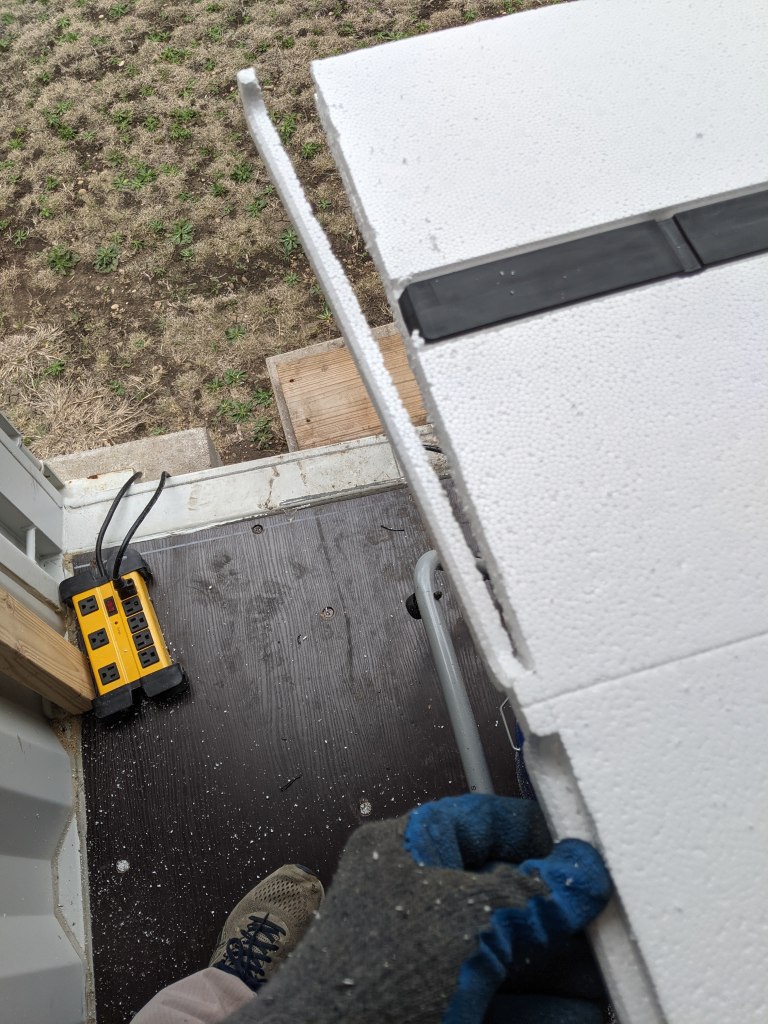 Even a ladder works in a pinch. Make sure to apply orange gap sealant between ALL pieces and ALL layers of pieces where exposed metal could find an air gap. I went kinda weak in mine but after watching one of Ed’s videos I saw that more is better. You can always cut off any excess that oozes out and hardens.