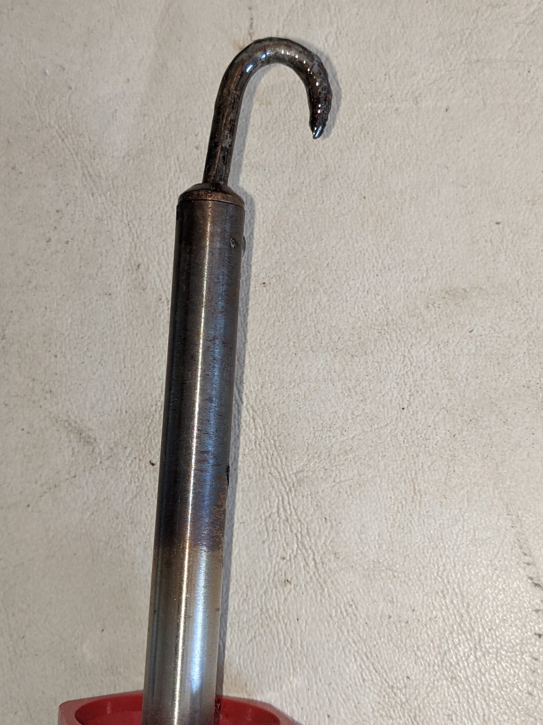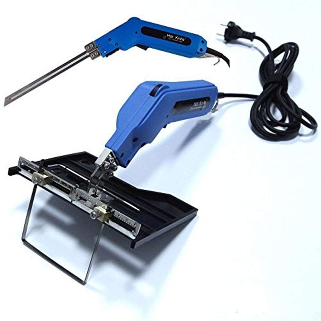 InSoFast recommends a purpose-built electric hot knife foam cutter, like the one pictured above. They come with different sized cutting “blades” for making different holes like for a square/rectangular electrical junction box or curved drain pipe. In our case, just for the water lines, we used an old soldering iron where we heated the tip and then bent it in the shape of a hook.