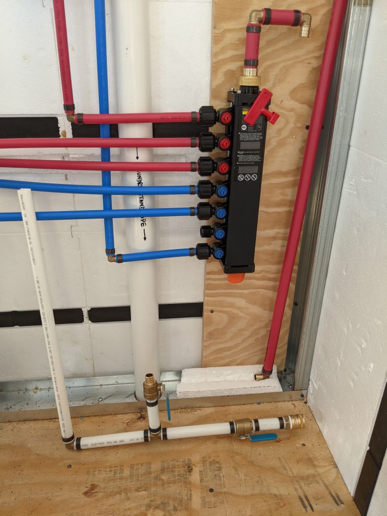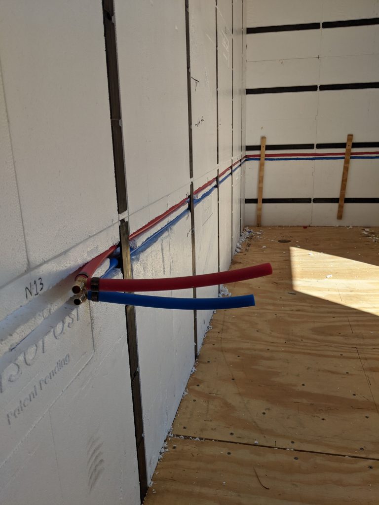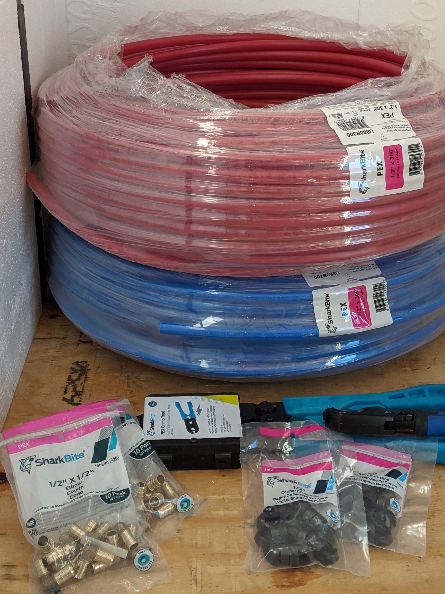 There are advantages and disadvantages to each, do your research, but we opted for PEX-B, or also known as just plain “PEX”, for cost and convenience reasons.