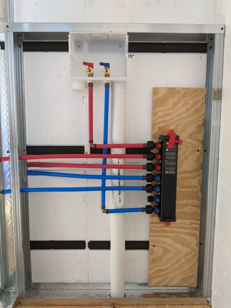 NOTE: Don’t forget to purchase (or create) grommets for strain or abrasion relief where the PEX goes thru your metal (or even wood) studs. That metal is sharp!