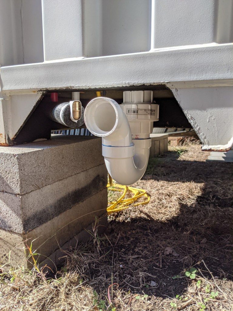 Word of the Day (Project) is “modular”. All external connections, including drainage pipe, must be able to be disconnected so when the container is placed on a flatbed trailer, these connections won’t get snapped off.