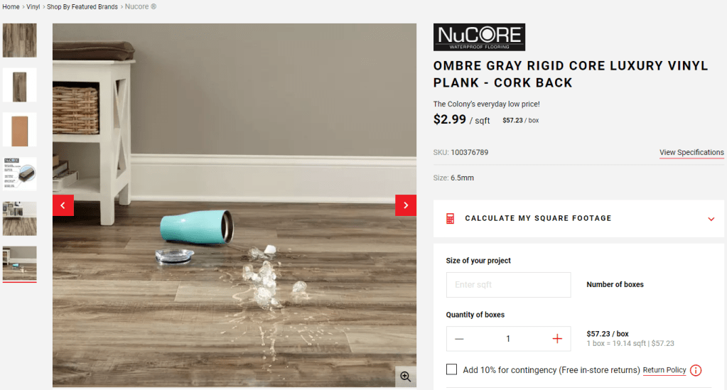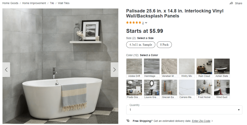 Third favor: Shop around and do your homework. Overstock doesn’t always have the best pricing or availability. There’s different sizes, pricing, and availability per size and color. For example, the larger tiles (pictured here) are a little cheaper per square foot, depending on the color you choose, but they’re not always in stock. However, the slightly smaller 23.2″ x 11.1″ are mostly in stock but are more expensive compared to other outlets. With a little research we found that Lowe’s carried the color and size we were looking for and for quite a bit cheaper. Add in our military discount with free shipping and viola, we have a winner.