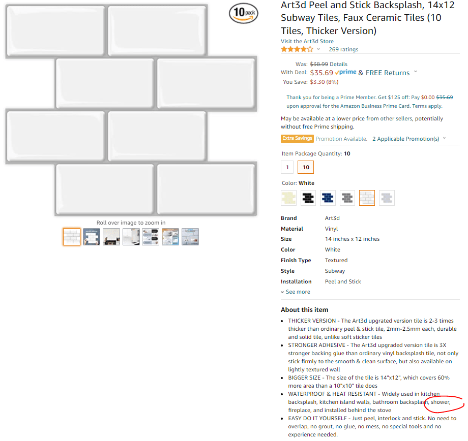And according to Amazon, “widely used” does not mean the product is “guaranteed” to work in the shower. Interestingly enough, since my complaint/inquiry, they’ve removed the one image that shows the product installed in a shower but they left the one showing it behind a tub install.