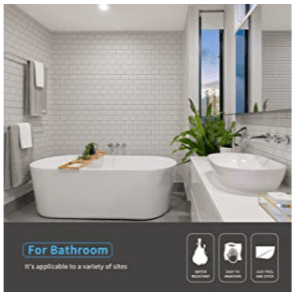 “WATERPROOF & HEAT RESISTANT – Widely used in kitchen backsplash, kitchen island walls, bathroom backsplash, shower, fireplace, and installed behind the stove.”