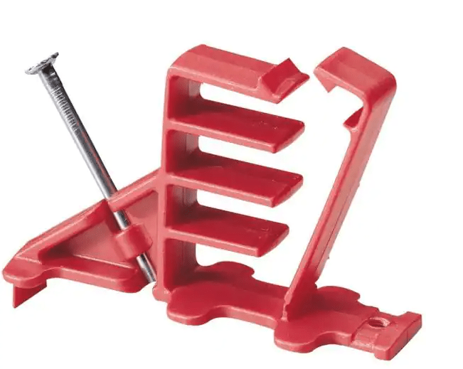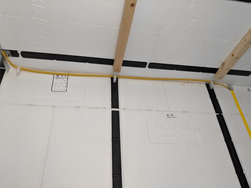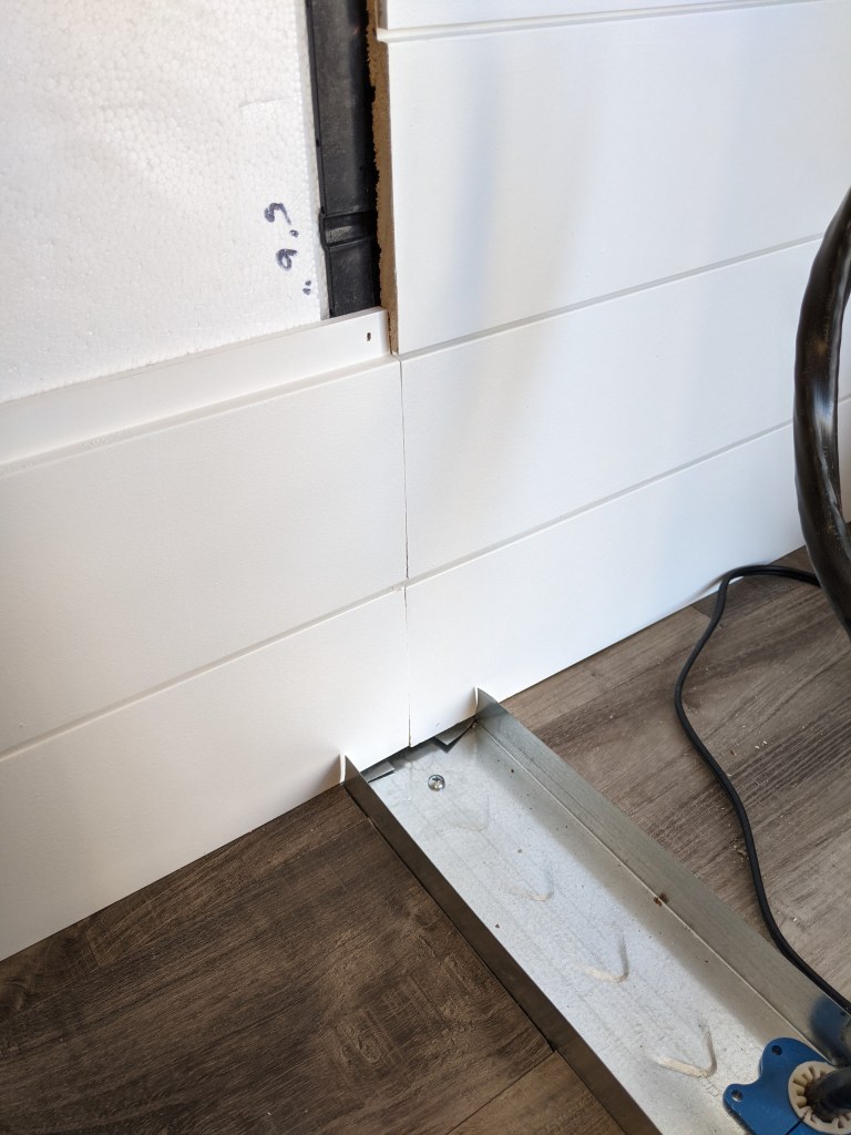 Each piece of shiplap shares one side of the plastic “stud” in the InSoFast where a finishing nail is used.