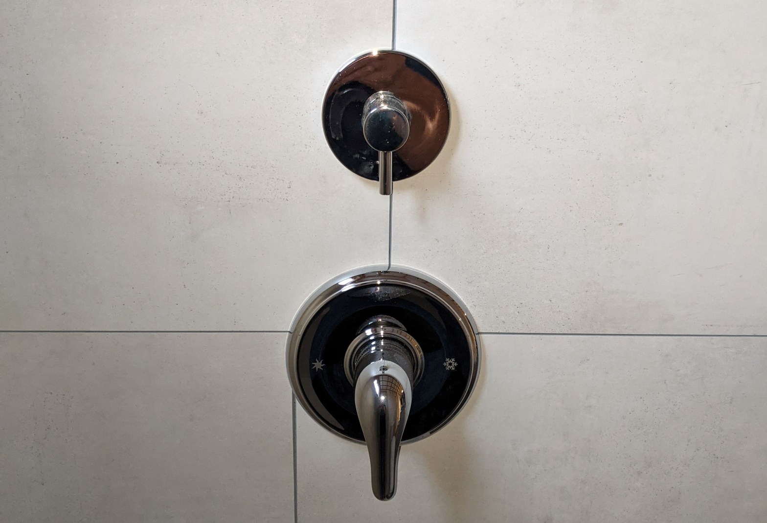 …everything fit like a glove. Moen also puts gaskets behind the face plates so when you screw them down you’ll create a water proof barrier between the fixtures and the tiles.