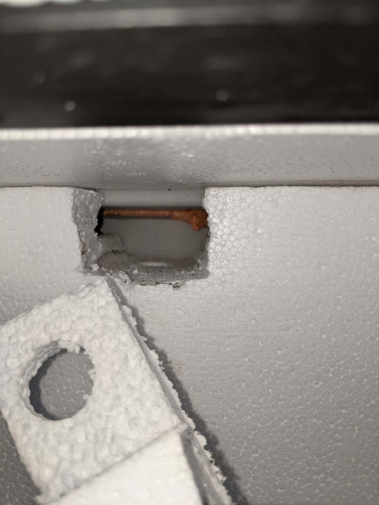 Remember, once the glue has cured spray some insulating foam around and behind the box to cover any exposed metal. Bare Metal = Condensation