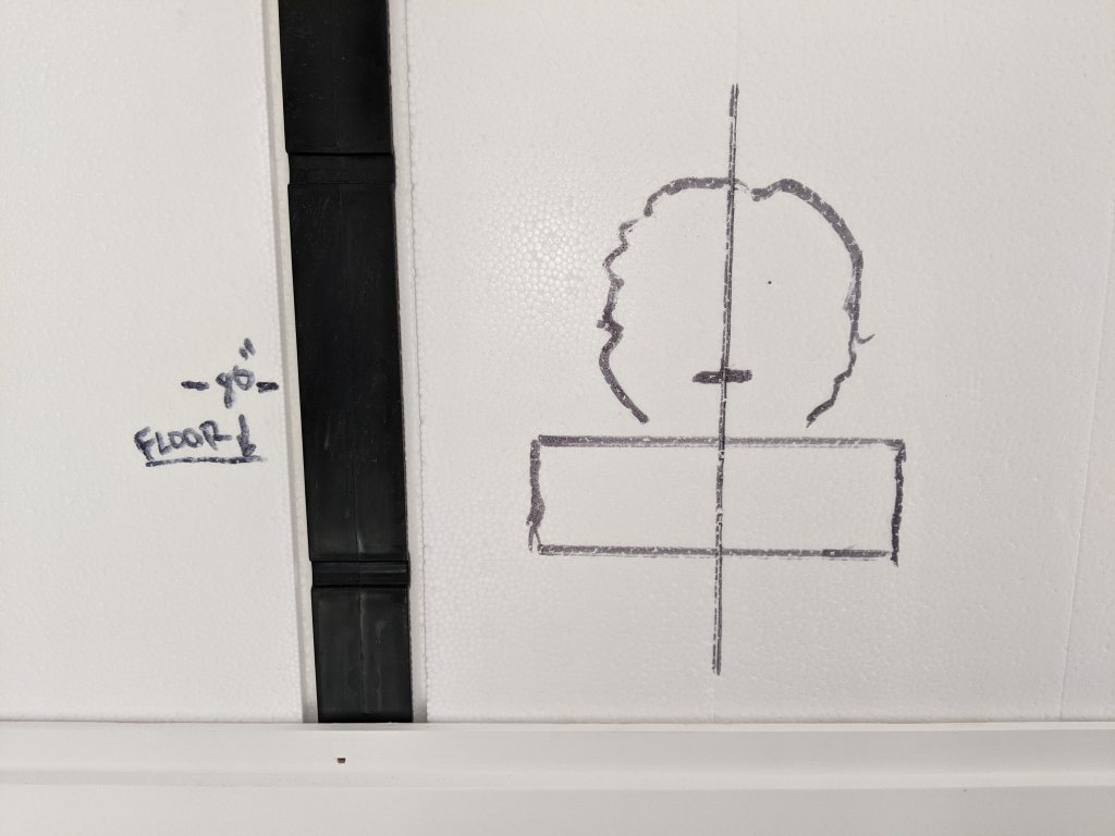 Now to cut the foam at the perfect height. Most vanity lights are between 75″ and 80″ from the finished floor. Draw your outline and get out the hot knife again.