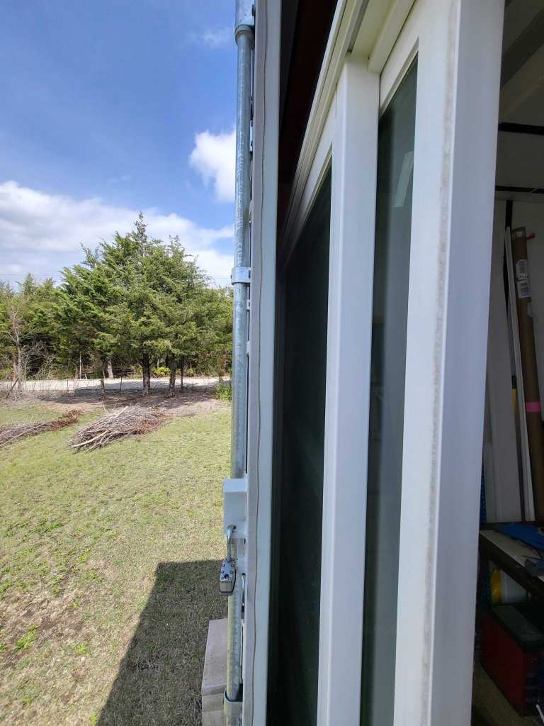 We positioned the framing so the outer metal doors can be closed for transport or really bad weather.