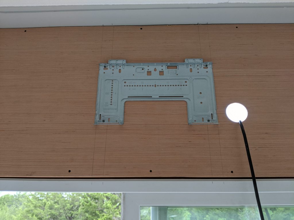 The system’s blower assembly hangs on the mounting bracket easier than hanging a flat screen TV. Just make sure your hole is positioned perfectly, so use the stencil, and then make sure the piping is organized properly so nothing gets pinched. Once we paint the panel a mat white it will look as good as a single sheet of drywall, but without the mud and tape.